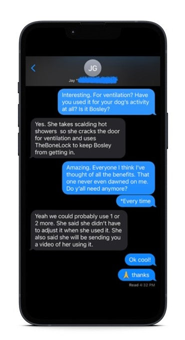 TheBoneLock™ is the true all-in-one solution that conveniently holds your door firmly in a cracked position without alterations to our home.