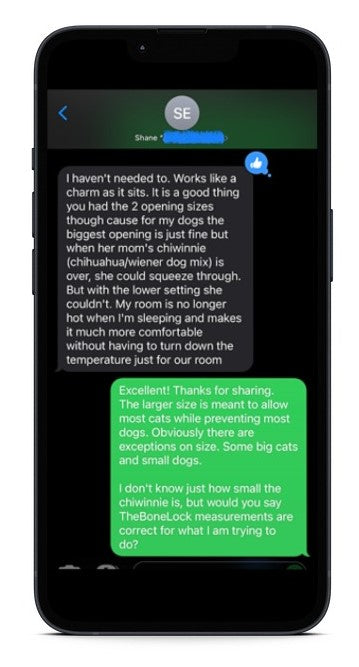 "It keeps the dog out so he's not eating all the cat food! Thanks, BoneLock!" ~ Cody, LA
